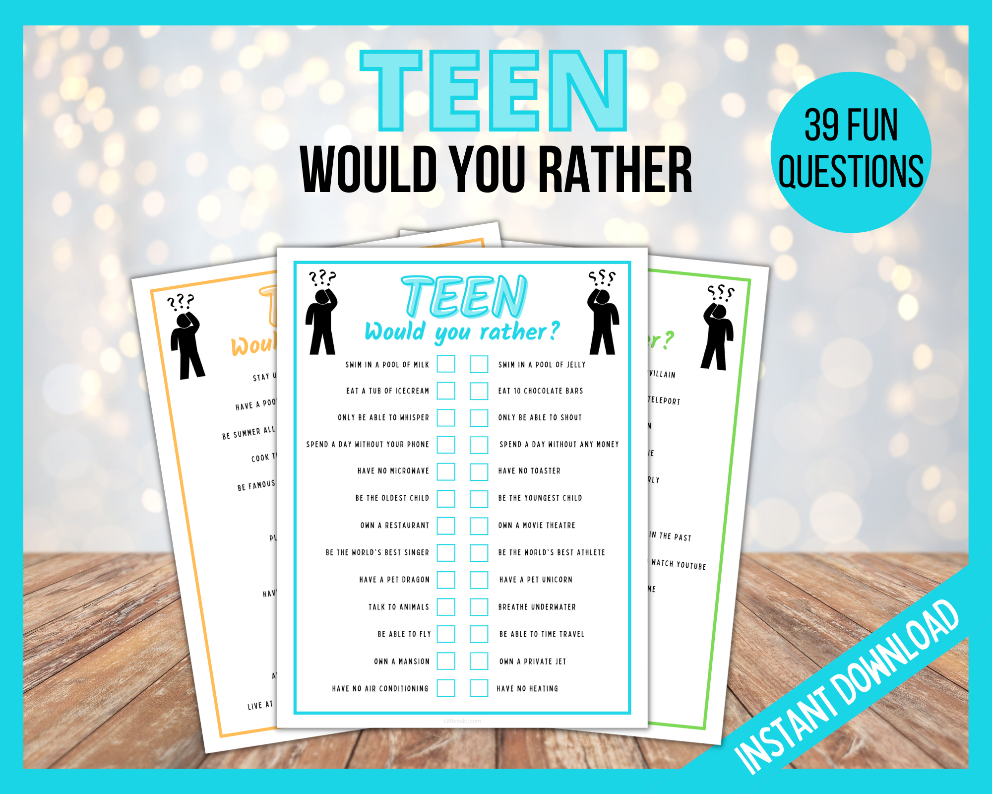 - "Would You Rather?" Game: Use the whiteboard to list a series of Would You Rather questions. These can range from silly to serious, sparking debates and discussions among the teens. It's a great way to get them talking, sharing opinions, and learning about each other in a fun, low-pressure setting.