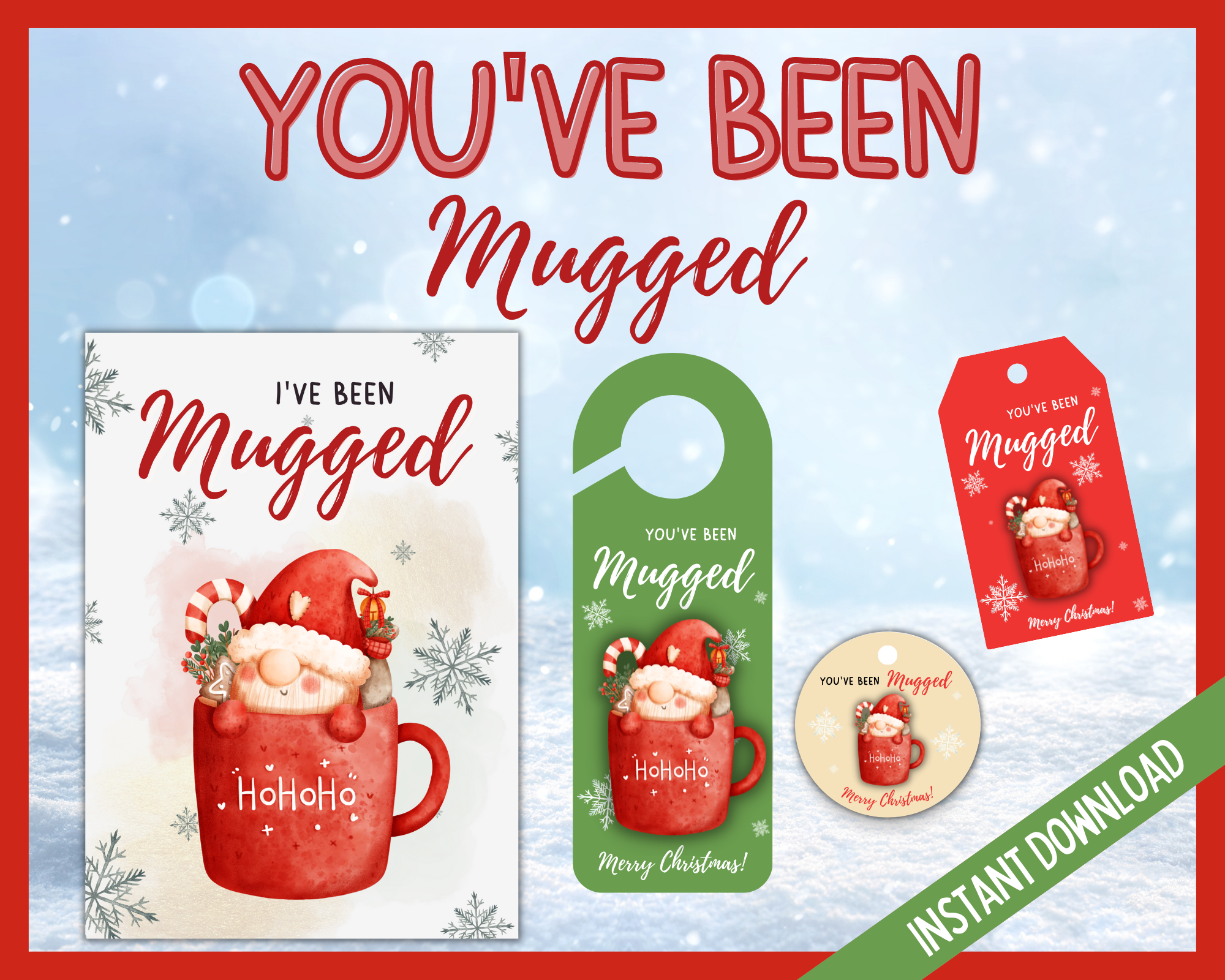 Print out the I've Been Mugged signs and gift tags and put them together with your Christmas Treats. Then look around your neighborhood for someone who has not yet been 'mugged' and secretly leave a Christmas treat mug and sign on their doorstep.