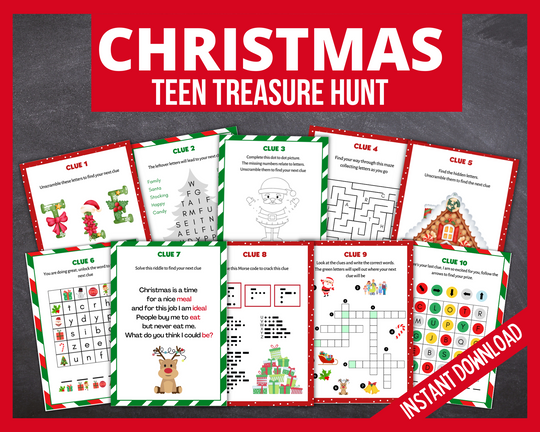 This indoor Christmas Scavenger Hunt comes with 10 printable clues Each clue contains a puzzle or riddle that must be solved to work out the location of the next clue.