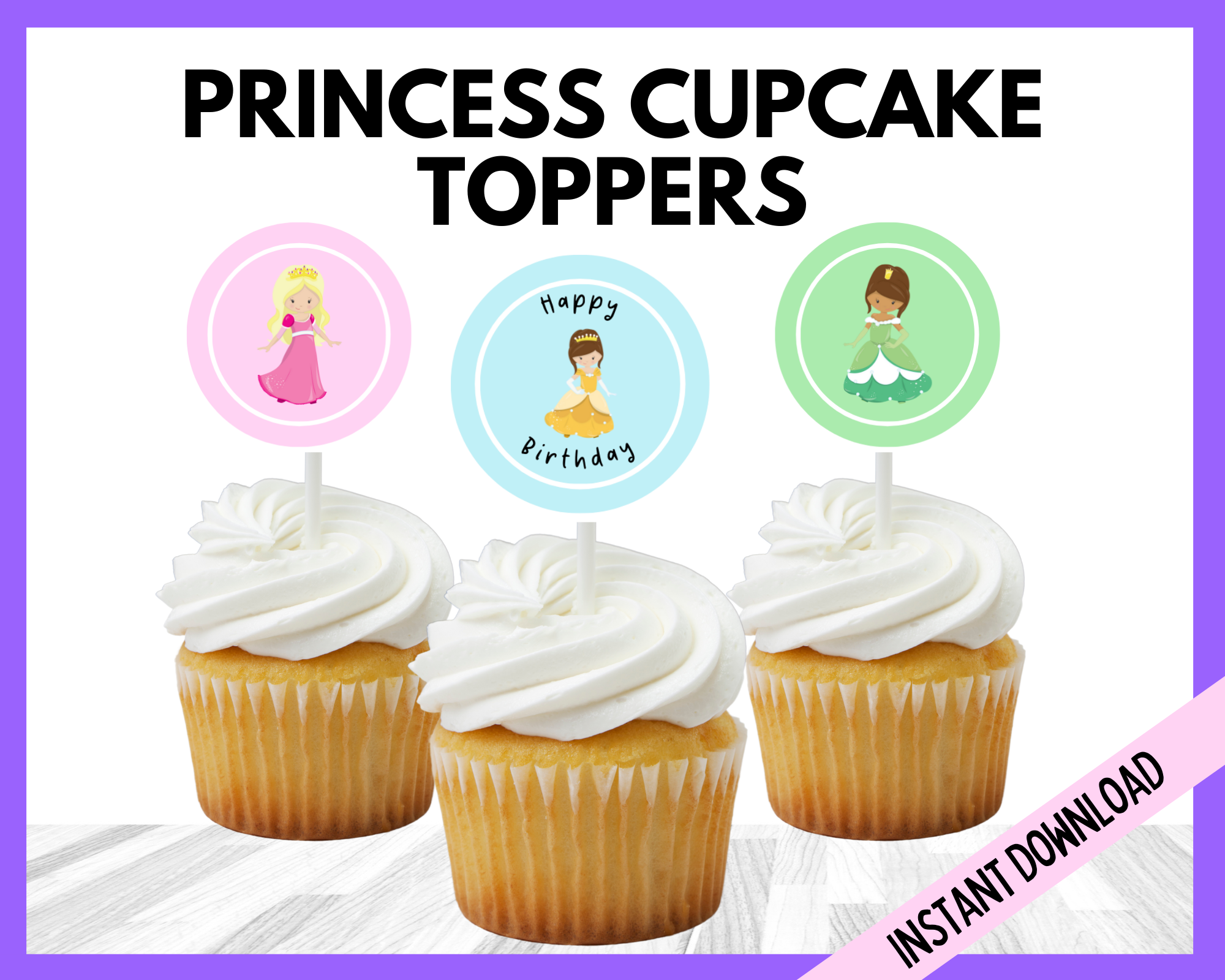 Fairytale Cupcakes: Decorate cupcakes with pastel-colored frosting, edible glitter, and princess-themed toppers like tiaras, castles, or princess figurines. You can also add princess cupcake toppers for a quick and easy idea.
