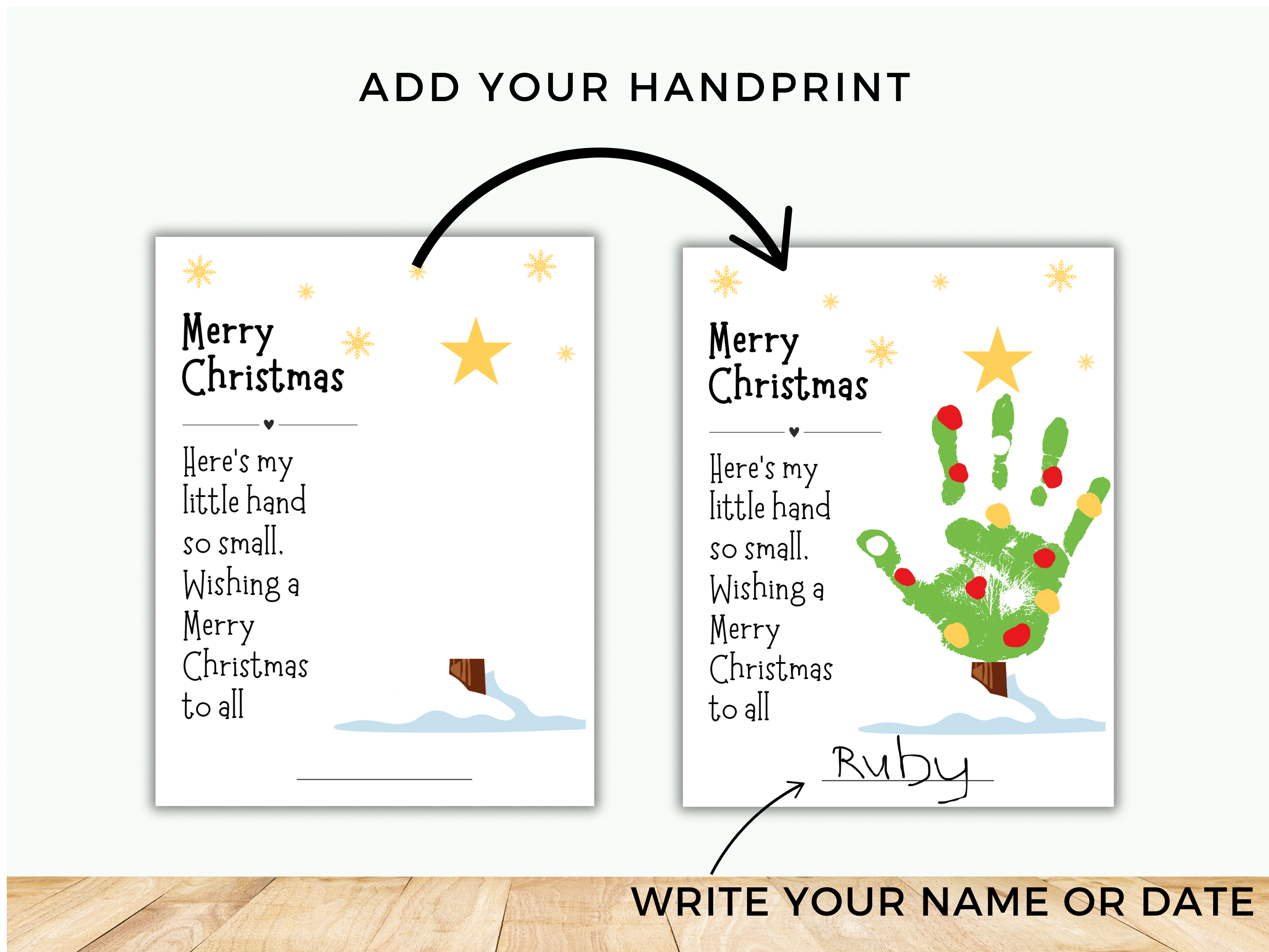 Space for your child to add their handprint as the tree, creating a truly personal and unique piece. You can then draw on ornaments plus there is a spot for your little one to write their name, making it even more special!