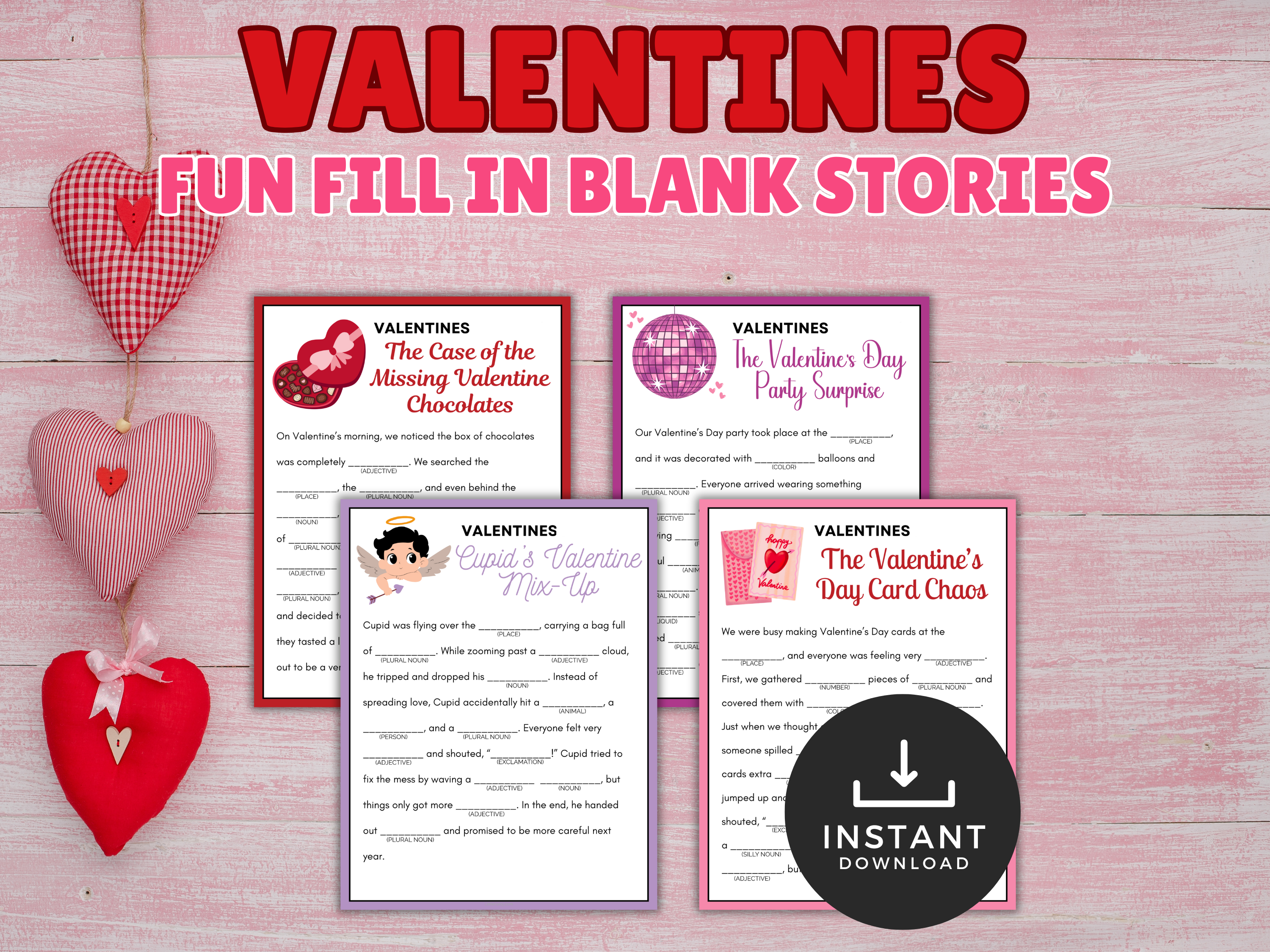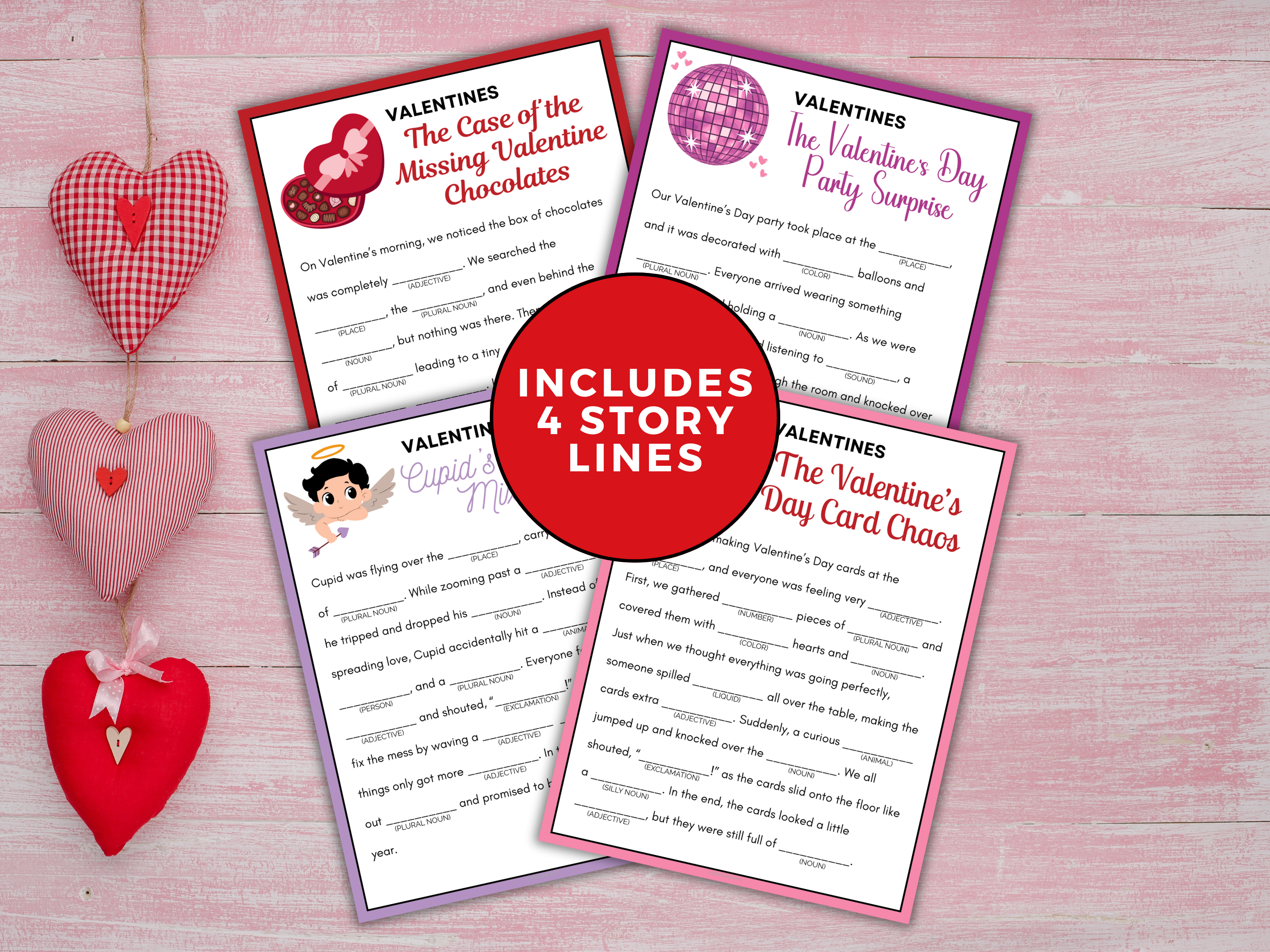 Bring laughter and creativity to your Valentine’s Day celebrations with these Valentine’s Fill in the Blank Stories! This printable activity set includes 4 Valentine-themed storyline sheets plus blank answer sheets, making it the perfect mix of silliness, surprise, and sweet fun.