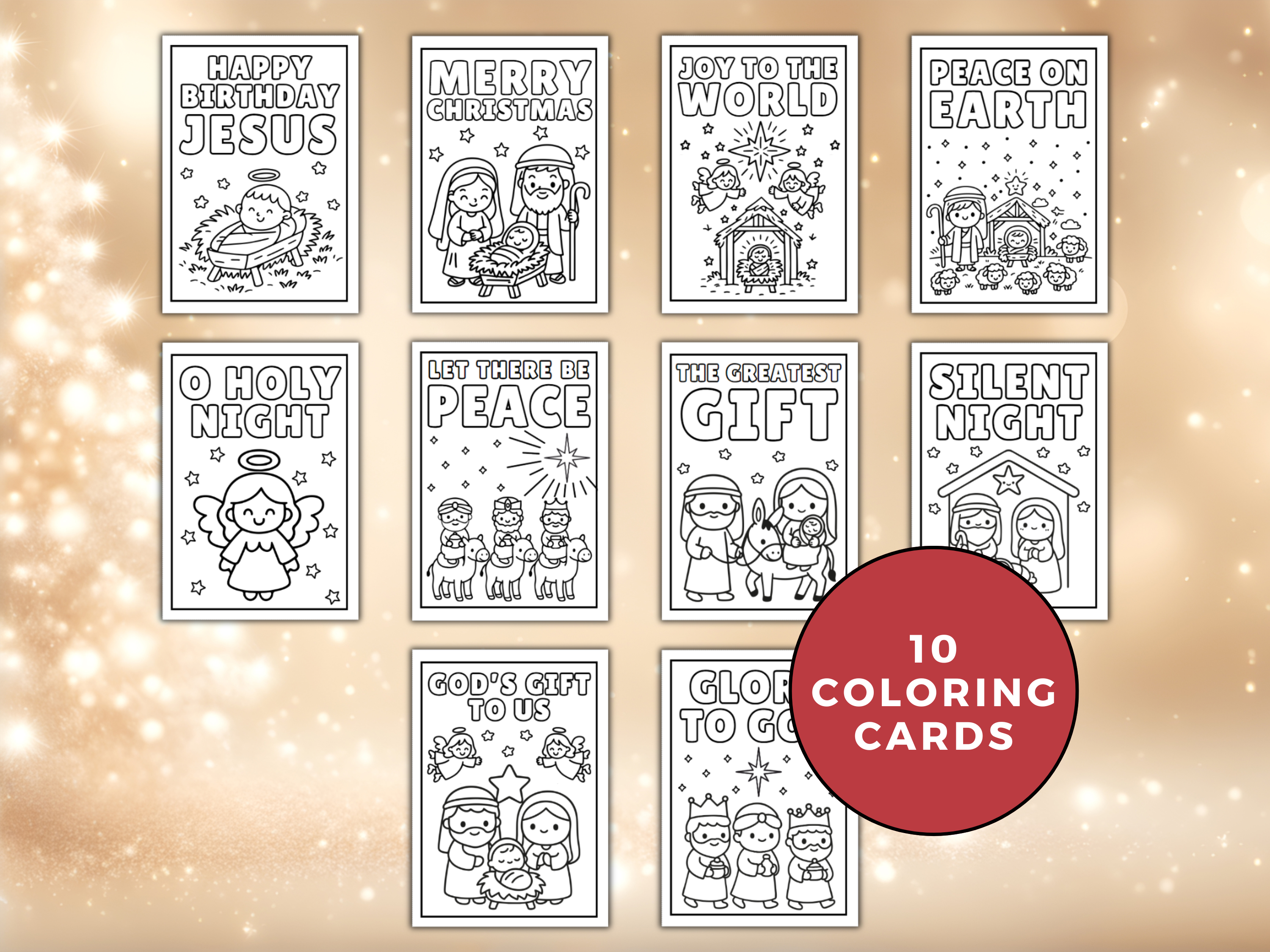 With 10 unique Nativity-themed designs, including scenes of the manger, Baby Jesus, Mary and Joseph, angels, the star of Bethlehem, and shepherds, these cards encourage creativity while sharing the true meaning of Christmas.