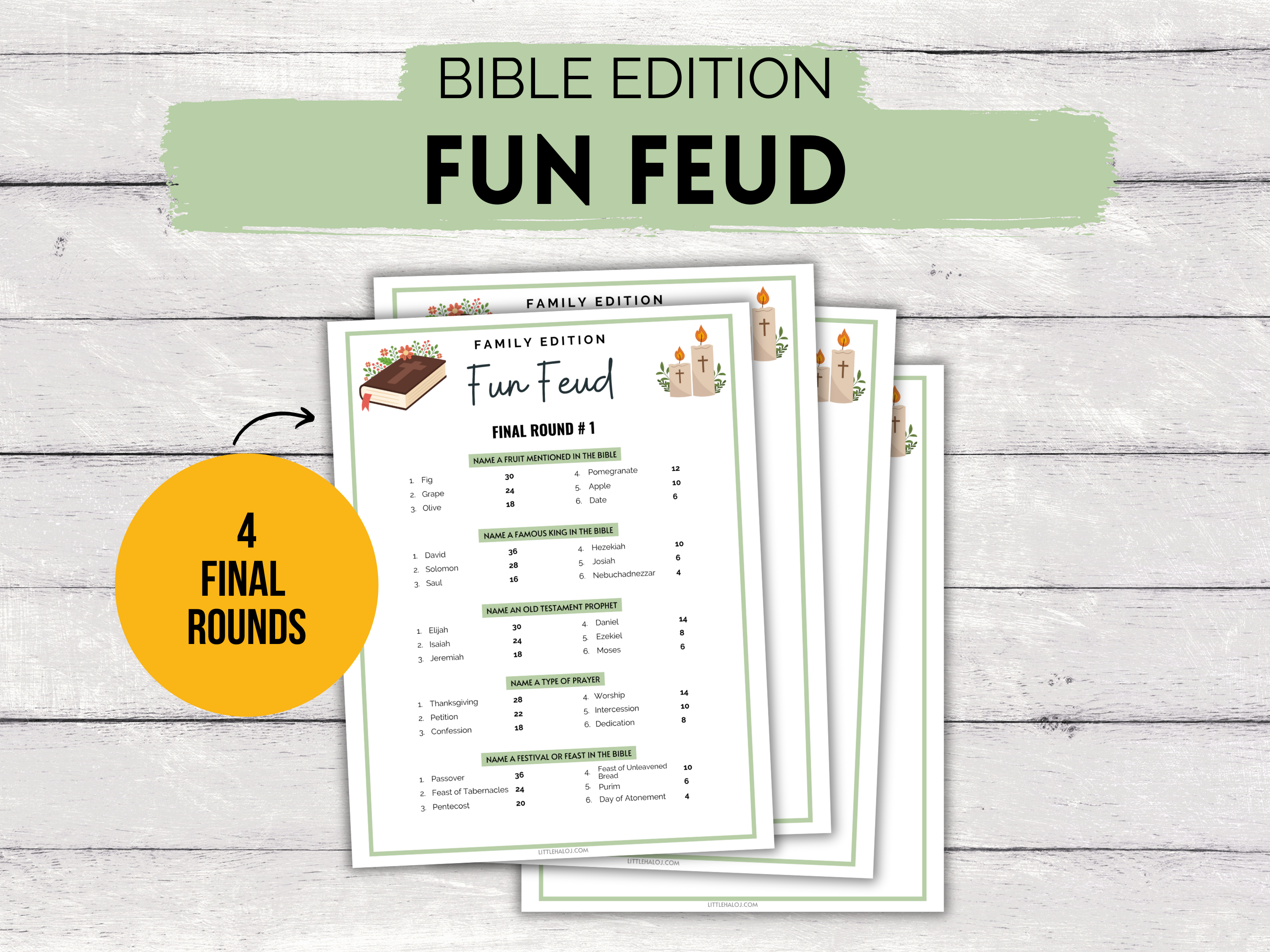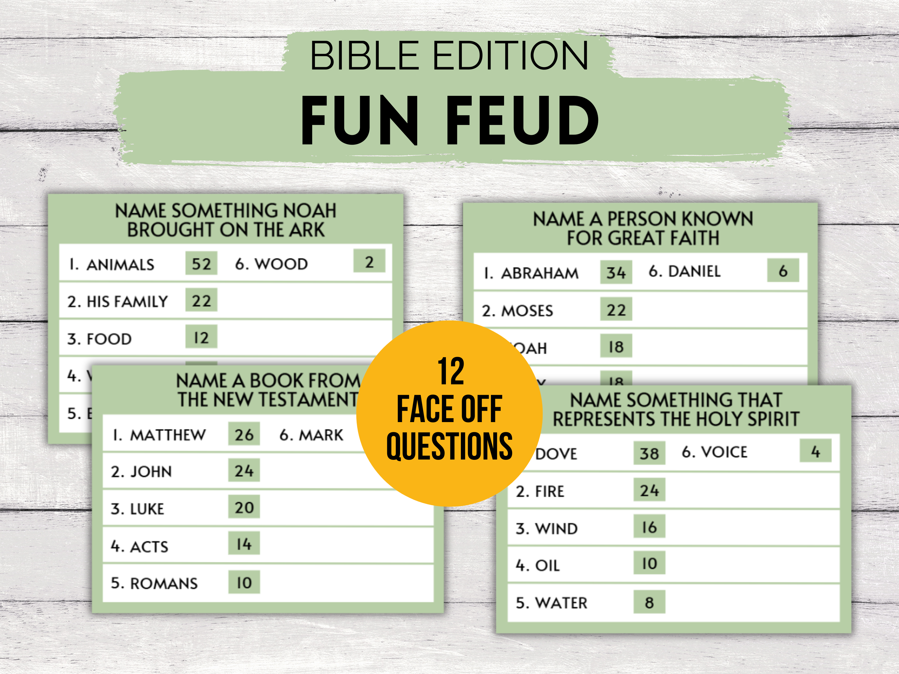 Make your next family or church game night extra exciting with this Bible Feud Game and see who wins, just like the TV show Family Feud, 100 people were surveyed and these are the top answers.